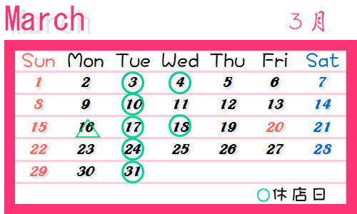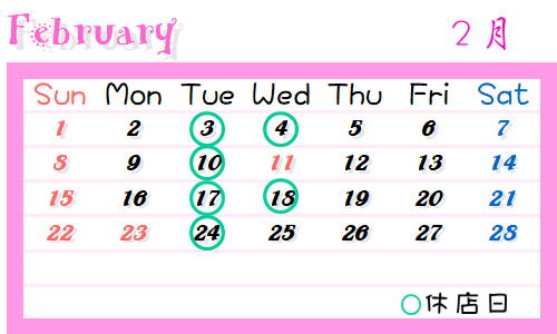 定休日以外の変更はお知らせ掲載いたします